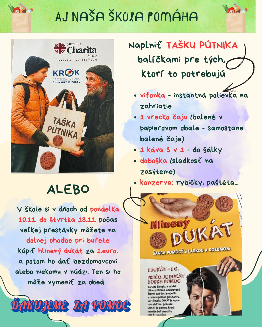 AJ NAŠA ŠKOLA POMÁHA - TAŠKA PÚTNIKA